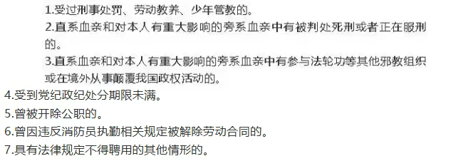 2.政治合格,具有高中及以上同等学历(退役军人不限学历),身心健康,无传染病、无纹身、无因从事消防工作易引发猝死或其他伤病的疾病,符合国家规定的消防员职业健康标准。